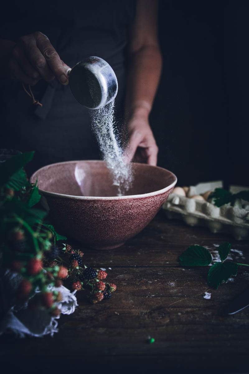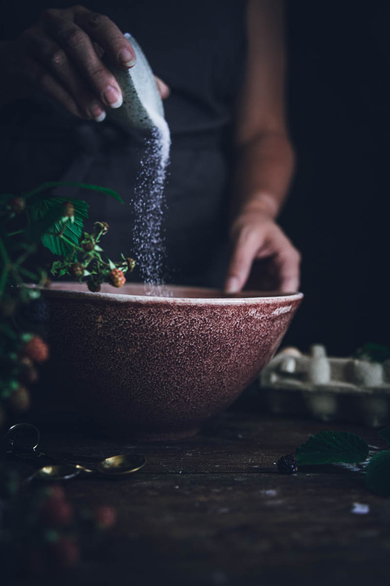 Troubu si předehřejeme na 180°C. Ostružiny omyjeme.