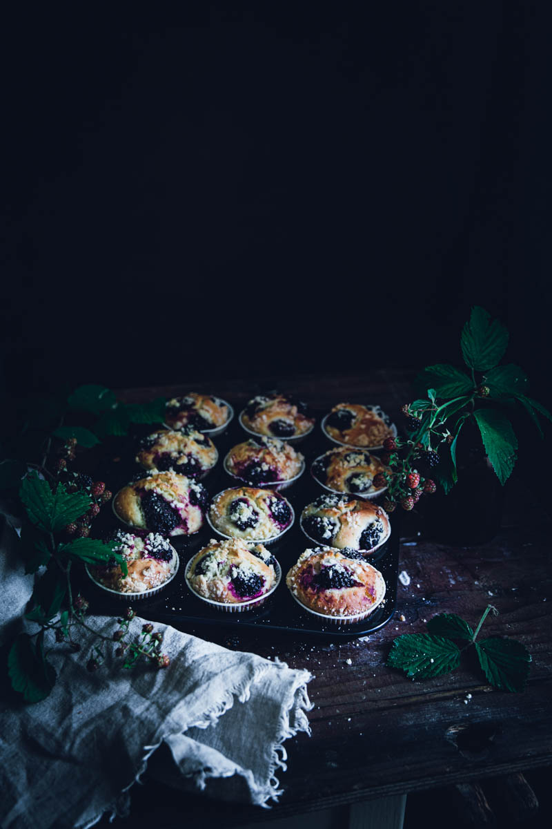 Minulý víkend jsme strávili na oslavě narozenin narozenin. Pohoštění bylo luxusní, dostali jsme spousty jídla, pití a taky skvělý švestkový koláč ke kávě. Když jsem se rozplývala nad každým soustem koláče, došlo mi, že jsem fakt, ale fakt dlouho neupekla nic, co by připomínalo bublaninu. Jasně, že jsem tenhle nedostatek musela hned napravit. Zbylo mi ještě pár ostružin, jenže na celý koláč by nevyšlo. Nevím, jak to máte vy, ale já když peču bublaninu nebo koláč s posypkou, vrstva ovoce musí být pořádně vysoká a souvislá. Někdy mi přijde, že je tam snad víc ovoce, než těsta. Hmm, tak co s tím. Ale protože jsem holka šikovná :-), upekla jsem muffiny a do nich rozdělila ostružiny. Navíc kromě ostružin voní ještě po vanilce, ... ale co je hlavní po létě a letních slunečných dnech.