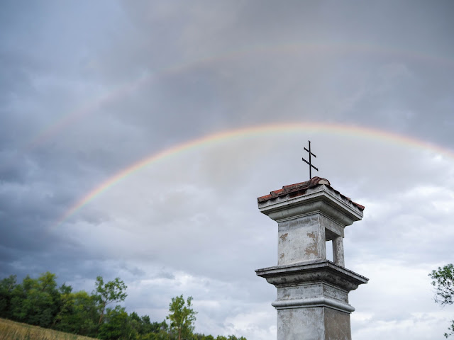 Než jsme pěšky dolši zase do Dolních Věstonic, sprchlo nám, ale když nad hlavou vidíte rovnou dvě duhy, vůbec vám to nevadí 🙂