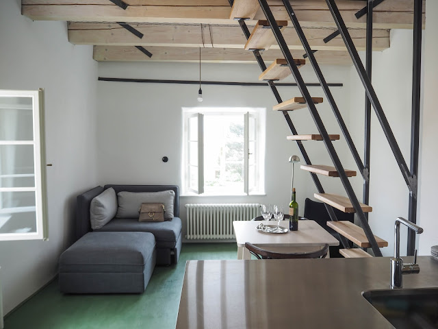 Štajnhausu. Skvěle zrekonstruovaný starý dům do moderní podoby. Zvenčí vypadá pořád stejně, ale uvnitř odvedli majitelé spoustu práce. Pokud máte rádi minimalistický styl a vzdušnost bez zbytečného nábytku a doplňků navíc, bude se vám tady líbit. Měli jsme zelený pokoj, který je i s kuchyňkou. Ložnice se nachází ve vestavěném patře, kam se vyšplháte po schůdkách. Kufry necháte dole a v posteli máte naprostý klid a relax bez věcí navíc. Rychlá wifi, super vybavená koupelna a moc příjemná matrace stačí ke štěstí. Na venkovní zahrádce vzadu za domem můžete relaxovat s knížkou nebo si dát ranní kávu. Pokud budete tedy hledat ubytování v Mikulově, už víte kam 🙂 Majitelé mají navíc kousek i restauraci