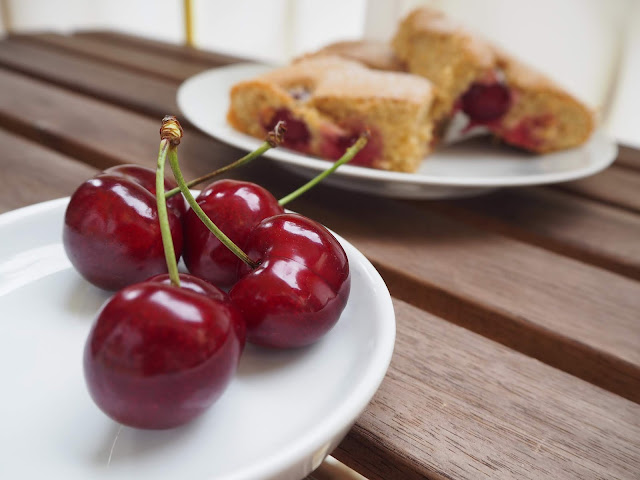 Do bílků dám špetku soli a vyšlehám z nich pevný sníh. Postupným přisypáváním zašlehám cukr. Přidám žloutky a nakonec vmíchám mouku. Těsto rozprostřu do formy a pokladu třešněmi. Peču 40-45 minut (doporučuji zohlednit zkušenosti s vlastní troubou).