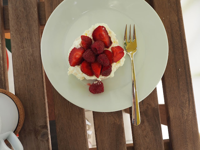 … a teď zpátky k dobrotám. Doma dobrotování pokračovalo. Na oběd si Bertík přál palačinky a ke kávě jsem nám udělala Pavlovu – mám je napečené a schované a občas je takto připravím …