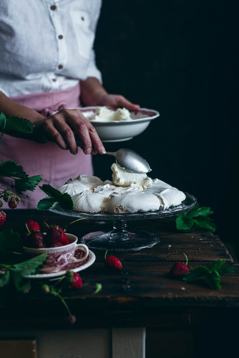 Na první pohled se může zdát Pavlova lehká, ale někdy dá pořádně zabrat. A je to jeden z dezertů, kde neexperimentuji – neubírám cukr, bílky šlehám tak dlouho, jak se má, troubu zásadně neotevírám a poctivě čekám na vychladnutí korpusu. Jen tak bude zaručen kýžený výsledek v podobě křupavé sněhově bílé krusty s nadýchaným vnitřkem.