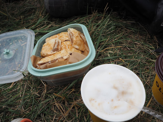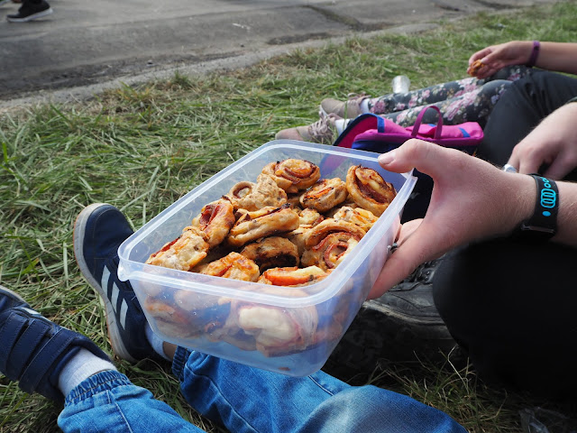… slané šneky upekla Míša z listového těsta. Byly výborné. Se šunkou, sýrem a Vysočinou. Ne, že by se tam nedalo nic koupit. Právě naopak. Stánků s jídlem a pitím tam bylo opravdu dost, ale taky děsně dlouhé fronty …