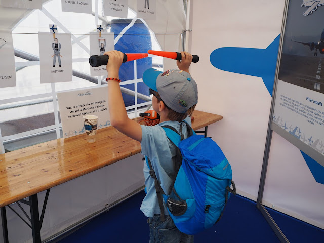 … a jako zlatý hřeb před odchodem drinky ve stánku, které mělo letiště. Bertík si vyzkoušel navigovat letadlo…