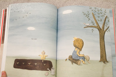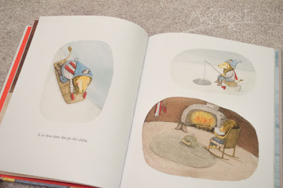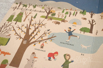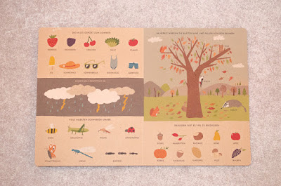 Alle vier jahreszeiten – myslím, že tato kniha je u nás prakticky neznámá, v češtině ani nevyšla. Já ji mám německy. Podotýkám, že z hodin němčiny si pamatuju asi tak dvacet slov, ale v tomto případě to vůbec nevadí, kniha totiž o textu opravdu moc není. Objevila jsem ji díky Instagramu autorky, německé ilustrátorky Katrin Wiehle, a hned mě zaujala. Je totiž o ročních obdobích. Toto téma bylo zpracováno snad milionkrát, ale v téhle verzi velmi jednoduše, tak, aby to pochopily i nejmenší děti. Jedná se o leporelo o několika stránkách, přičemž každému období jsou věnovány 3-4 strany. Jedna dvojstrana vždy představuje stejnou krajinu okolo domu a jak se proměňuje během jara, léta, podzimu a zimy. Ukazuje přírodu, lidské činnosti, zvířata a typické předměty. Další stránka je pak doplněním této hlavní dvojstrany. Kniha je celá vyrobená z recyklovatelného materiálu a tištěná přírodními barvami, což je na jednu stranu pro mě, jakožto milovníka „zelených“ věcí super, na stranu druhou mě trochu mrzí, že bílá barva kvůli tomu není bílá, ale jakoby šedobéžová a některé obrázky jsou tím pádem méně zřetelné. Ale samotné ilustrace mě opravdu nadchly (stejně jako celá práce Katrin Wiehle, kterou určitě zkoukněte!). Myslím, že pro základní pochopení ročního cyklu je toto ideální kniha. Snad se bude líbit.