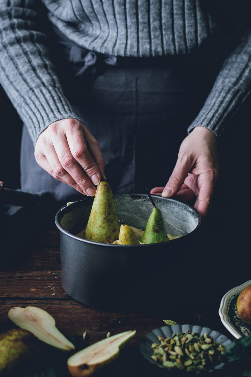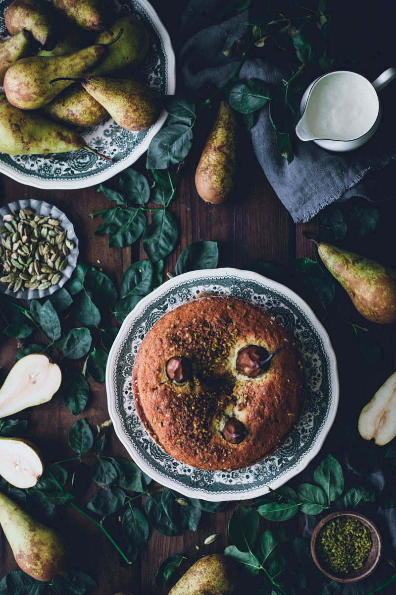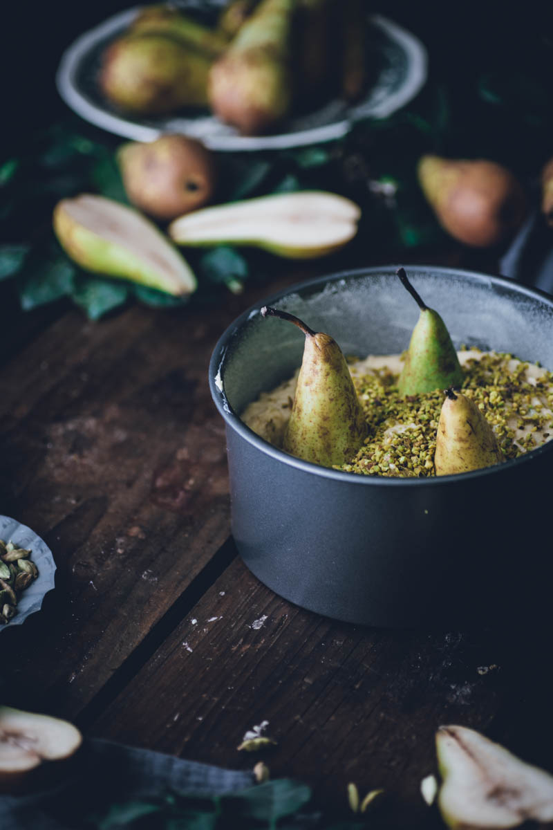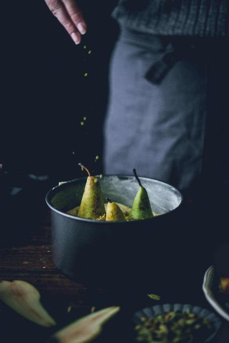 V seznamu receptů mám už nějakou dobu koláč s celými hruškami, ale řada na něj přišla až nyní. Vlastně jsem tento koláč musela upéct o víkendu už podruhé. Jednak nám moc chutnal a jednak jsem chtěla recept ještě jednou otestovat, než vám ho sem přidám. Důležitou součástí jsou pistácie a kardamom. Kombinace je to přímo ideální. Díky kardamomu má koláč mírně kořeněnou pikantní chuť, ale pokud kardamom zrovna nemusíte, klidně ho vynechejte. I samotné pistácie se s hruškami dobře doplňují.