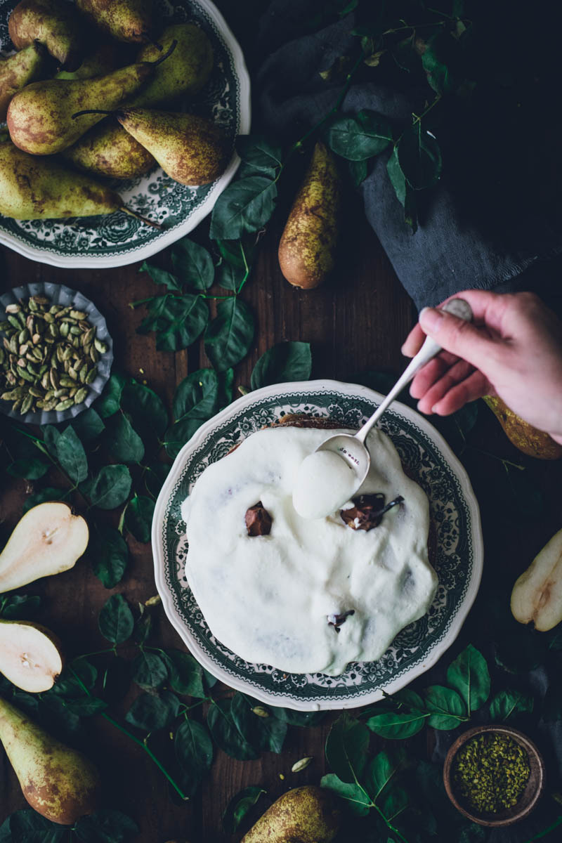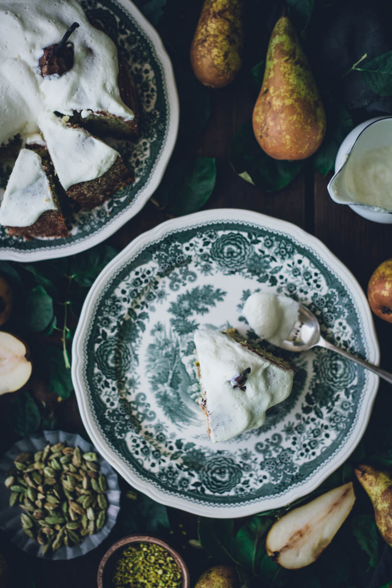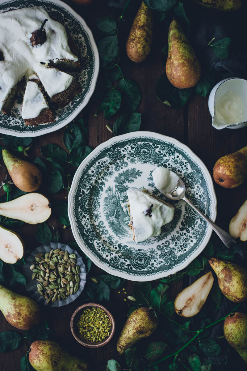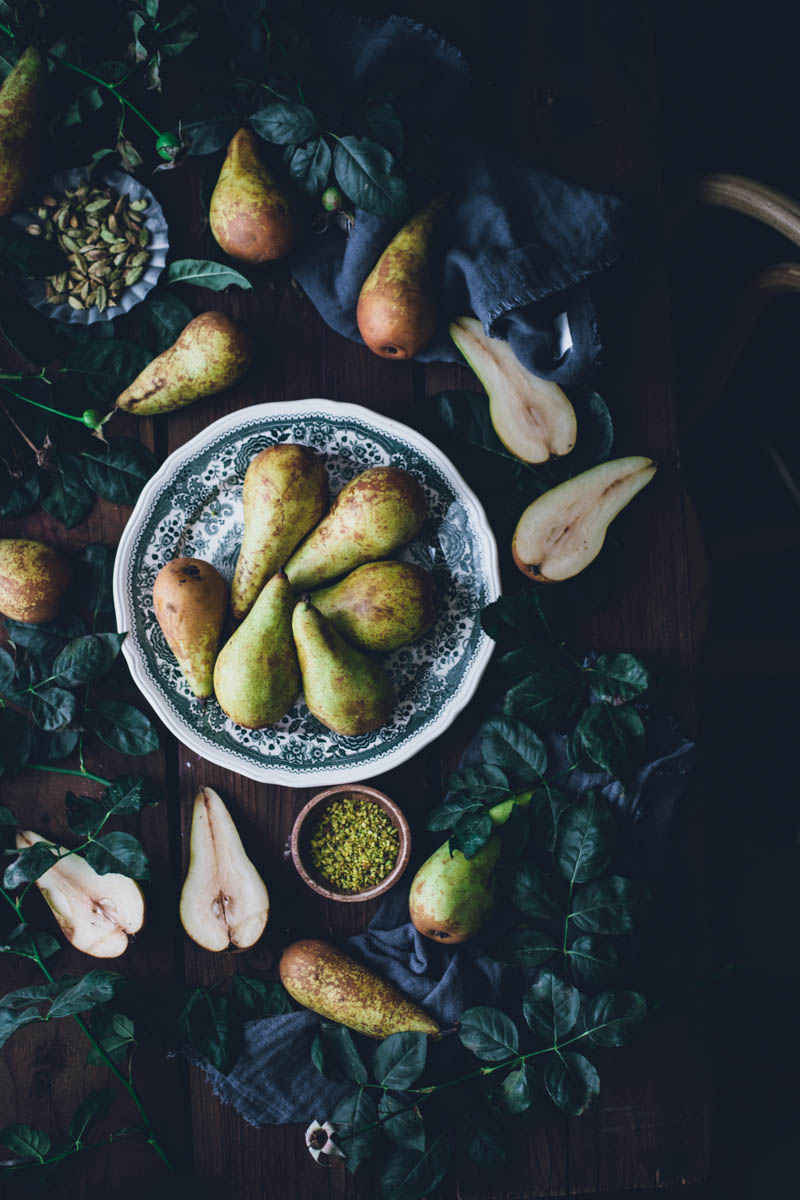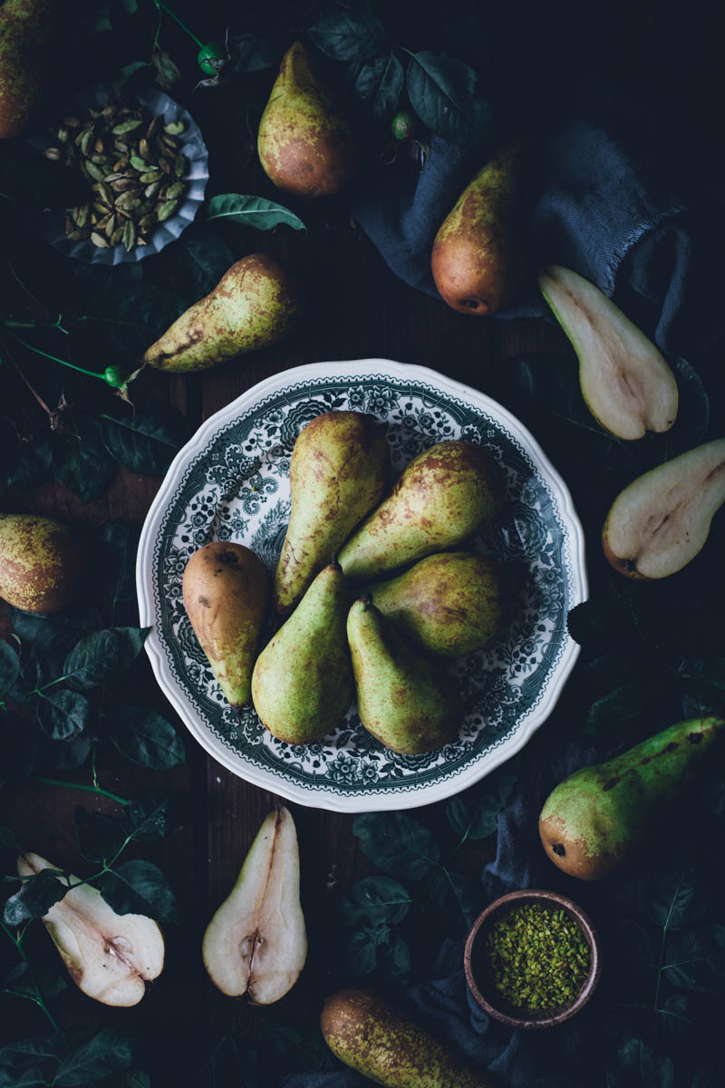 V seznamu receptů mám už nějakou dobu koláč s celými hruškami, ale řada na něj přišla až nyní. Vlastně jsem tento koláč musela upéct o víkendu už podruhé. Jednak nám moc chutnal a jednak jsem chtěla recept ještě jednou otestovat, než vám ho sem přidám. Důležitou součástí jsou pistácie a kardamom. Kombinace je to přímo ideální. Díky kardamomu má koláč mírně kořeněnou pikantní chuť, ale pokud kardamom zrovna nemusíte, klidně ho vynechejte. I samotné pistácie se s hruškami dobře doplňují.