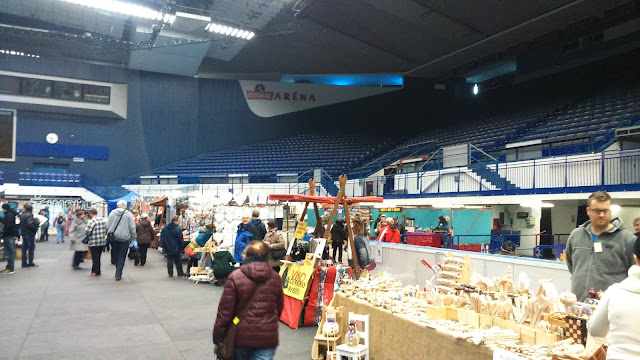 … v hale hrají vánoční písničky, vždy si s mamkou dáme medovinu, projdeme je skrz na skrz, málokdy koupíme něco jiného než jídlo, ale musíme tam jít. Nejlépe hned první den dopoledne a pak už máme klid zase na celý rok :-)) Včera jsem si to užily úplně stejným způsobem jako vždy, jen nás zarazilo, že je daleko méně stánků …