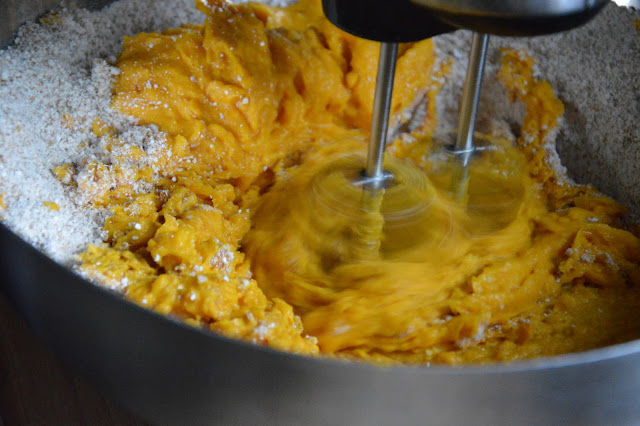 ...tekvicové pyré, ktoré som si pripravila tak, že som celé polovice tekvice ( bez semienok ) dala upiecť do rúry a po vychladnutí som vnútro vydlabala...