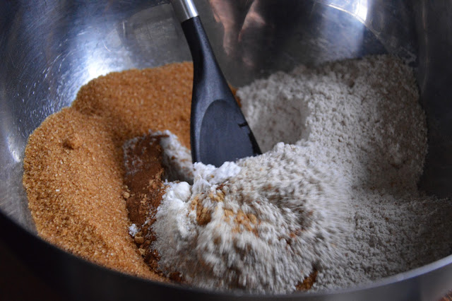 Všetky suché ingrediencie zmiešame....