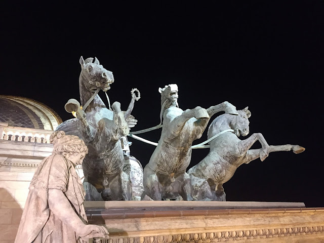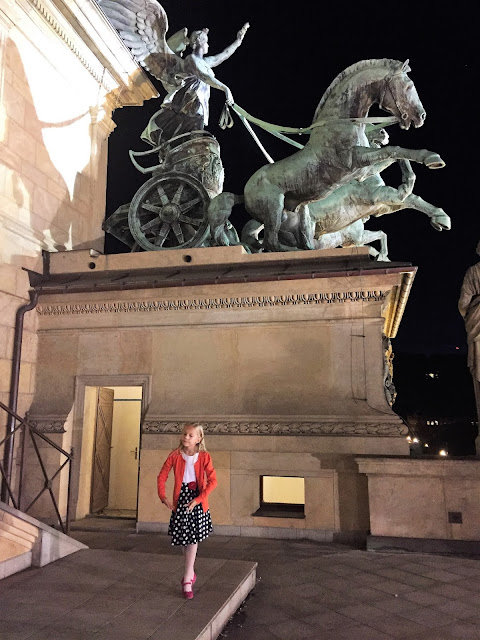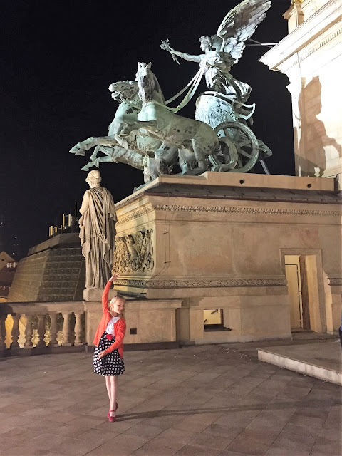 O přestávce se ocitáme shodou okolností skoro na střeše Národního divadla, těsně u obrovských trig a múz, a já si připadám „takhle“ malá a dcera chce tančit, a tak si tančí… Tak to jsou přesně ty pocity, které jsou nezaměnitelné, a které nás spojují a dělí zároveň. Také bych chtěla tančit ale… netančím a jen v úžasu hledím na pražská panoramata…