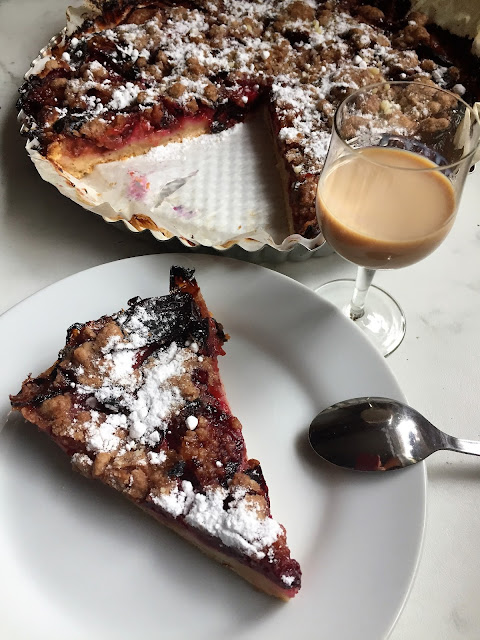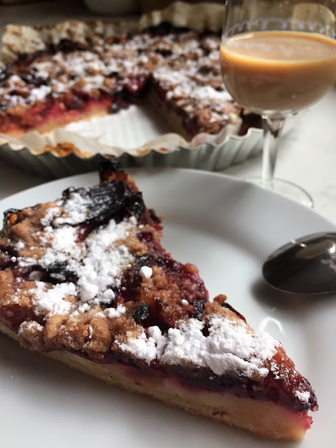 I když těsto nevypadá na pohled až tak úžasně, velká vrstva sladkých švestek nakrájených na dílky, prolínajících se s těstem, pečící se a pouštějící nezaměnitelnou švestkovou šťávu do těsta, udělá ze základního korpusu úžasný, lahodný a jemný pečený koláč, jehož příprava a pečení zabere se vším všudy 40 minut. Místo švestek lze použit i jiné druhy ovoce, třeba meruňky či vypeckované višně nebo borůvky. Když je upečeno, lehce zapráším koláč moučkovým cukrem a naráz se ocitám v Paříži, a vím proč!
