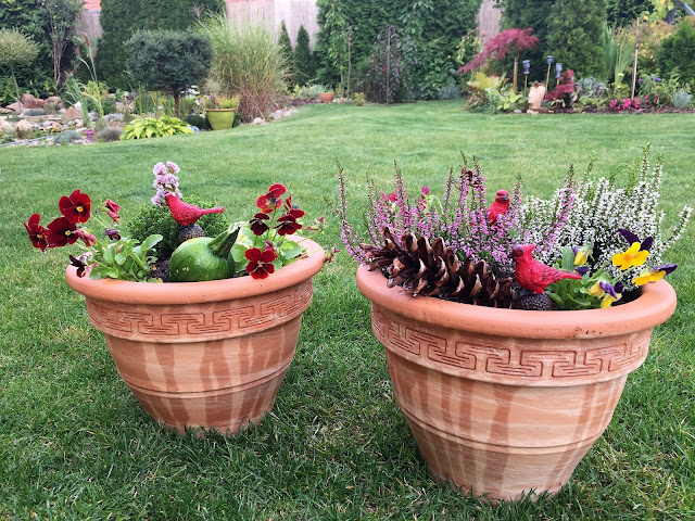 Má smysl osazovat rostlinami tzv. podzimní nádoby a truhlíky nebo nemá? Toť otázka… Existuje řada rostlin či květin, které jsou krásné na podzim, dokážou přežít v truhlících zimu a ještě na jaře vypadat krásně. Může se jednat o rostliny sezónní či vytrvalé. Třeba taková maceška…nebo vřes, vřesovec, různé druhy travin, stálezelené keříky hebe, chryzantémy, okrasné zelí (kapusta). Řadě z těchto rostlin to v nádobách „sluší“ mnohdy více, než na záhonu, protože zde zcela vynikne jejich drobná krása. Já většinu rostlin stejně další jaro přesazuji, protože uvolňuji nádoby letničkám. Podzimní truhlíky pak lze dozdobit různými přírodninami, keramickými drobnůstkami, kamínky, šiškami. Fantazii se meze nekladou. Pokud stojí nádoba či truhlík v místě bez přísunu závlahy „shora“, je nutné lehkou zálivkou rostlinky občas zalít, a to i v zimě, samozřejmě za příhodného počasí.