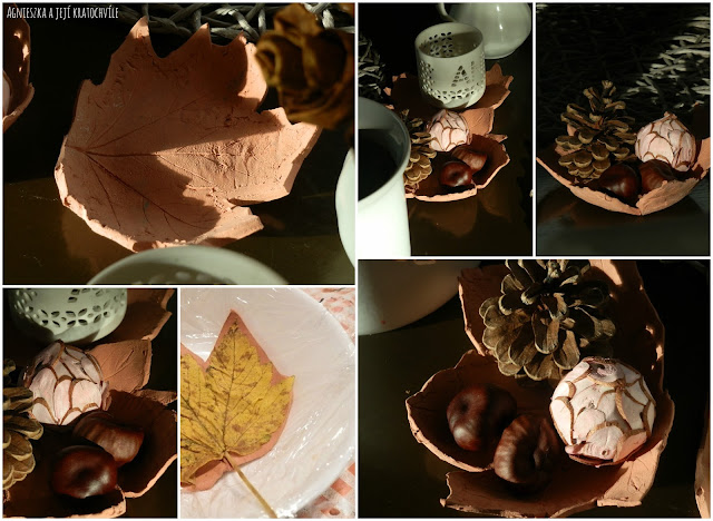 Na rozdíl od vypálené a glazované keramiky nebudeme sice moci mističky využít na potraviny, ale poslouží jako milá podzimní dekorace a pokud je budeme plnit, tak nějakými přírodninami – žaludy, kaštany, bukvicemi…