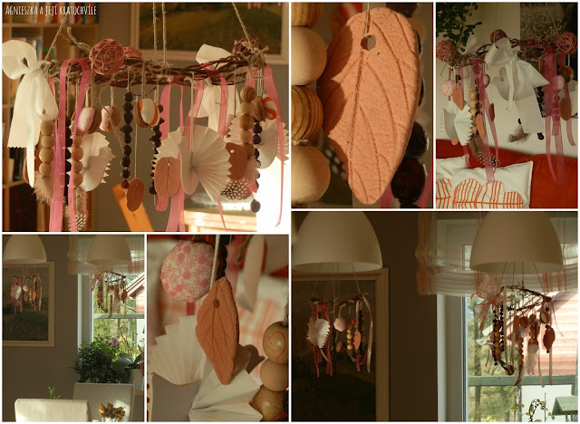 Lístky doplnily naše věnečky nad jídelním a konferenčním stolem – ty už asi nesundám, i když je máme už asi dva roky. Jsou úžasně variabilní, stačí podle ročního období změnit pár drobností a jsou opět trochu jiné 🙂