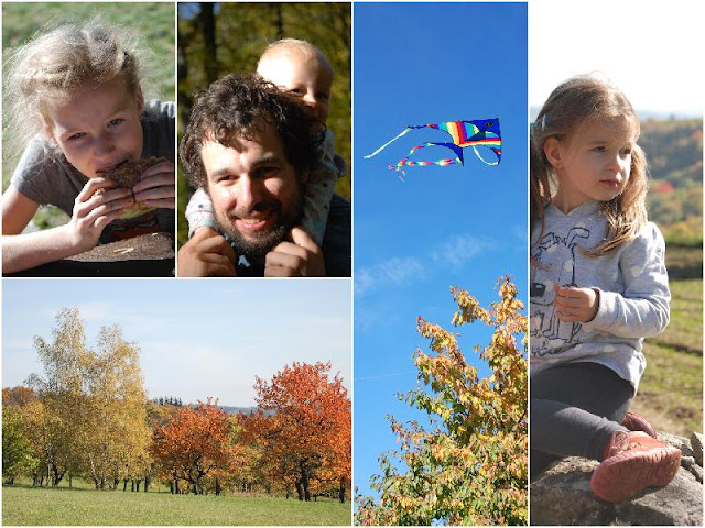 Dostupnost do Brna (pro nás kvůli práci dost klíčová) je skvělá, město je více než baby-friendly a okolí nádherné. Některá místa nás nutí se vracet i vícekrát do roka. Na Veselském Chlumu jsme byli letos na jaře. Když ale minulý víkend předpověď počasí slibovala výjimečný den, jeli jsme zas. Výhledy do barevného kraje, nadšení kamarádi, kteří za námi přijeli až z rodného (a rovného) Poodří, k obědu domácí hamburgery s luxusním výhledem. Svátek měly všechny Terezy, a tak jsme Terezce na Chlumu předali draka. Jen ten vítr zrovna ten den vůbec nefoukl, takže ani Drak, který létá, nelétal. Nevadilo to, vyřádili se všichni, včetně dospělých. Nejmenší holky jsme trochu unavili, Sára proto musela na chvíli za krk a o kočárové svezení byla bitka. Lomnice – Štěpánovice: 7,6 km