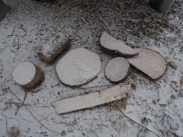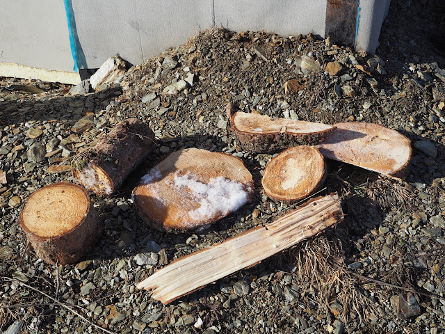 při první procházce do lesa jsme narazili na spoustu spadaných stromů. Teda lépe řečeno, spadané stromy už byly zpracované a odvezené a z toho co po nich zůstalo jsem nasbírala pár pokladů a odvezla si je domů …