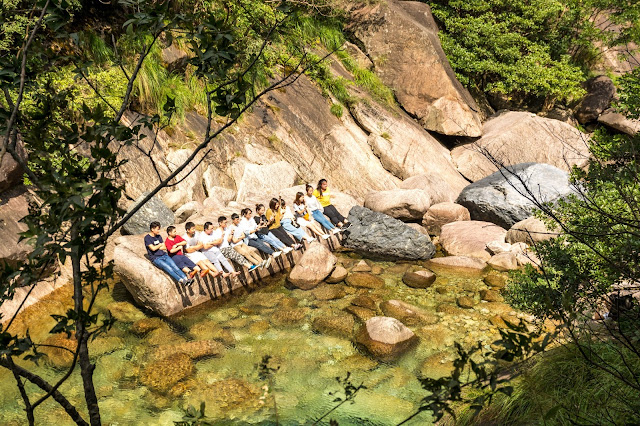Za těch 14 dní jsme navštívili klasická místa, která ukazuji všem kdo jsem přijede, tedy Staré město, Yuyuan Garden, Pudong, Perlová věž, Shanghai Tower, Východní a Západní francouzská koncese, Nanjing Road, Muzeum, Severní Bund, People´s Square, buddhistické kláštery a samozřejmě promenádu Bund s výhledem na mrakodrapy - tak jsme byli večer, brzy ráno i přes den, tak moc se nám to všem líbilo (zejména když bylo tak jasno a modrá obloha). I pro mě je to místo, kam můžu chodit pořád a ještě mě to neomrzelo:-) Chtěli jsme ale navštívit kousek přírody a nebýt celou dobu jen ve městě, jeli jsme do Žlutých hor (Huangshan), které jsou relativně blízko od SH a kam se dá po práci dojet autem (6 hodin). Po čínském venkově se nám už docela stýskalo, a hlavně jsem byla zvědavá, jak se bude líbit právě našim.