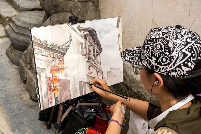Další den, tedy v sobotu, jsme se do hor chtěli vydat ještě jednou, přecejen jsme doufali, že si hory vylepší svoji reputaci a ukáží nám více. Víkendoví turisti ale byli rychlejší než my a když jsme dorazili k lanovce, kde v pátek byli tři lidi, tak tentokrát jich bych snad tisíc miliard a fronta na lanovku byla tak na tři hodiny. Nohy brutálně namožené ze včerejšího sestupu ale odmítaly si ten kopec dát v opačném směru. Po chvilce rozmýšlení rodinná rada rozhodla, že si najdeme náhradní plán, a tím byla návštěva historických vesnic Xidi a Hongcun. K tomu se váže veselá historka. Tyto vesnice jsme měli v plánu navštívit tak jako tak, ale až v neděli dopoledne před odjezdem. Ptali jsme se i pána v hotelu, co a jak, a tím, že neuměl anglicky (to už je takový čínský kolorit), jsme při komunikaci používali nějaký čínský hlasový překladač. On se zeptal, co bychom tedy chtěli vidět a já řekla, že bychom chtěli vidět Dixi (místo Xidi)- prostě jsem ty dvě slabiky přehodila. No a překladač si myslel, že mluvím anglicky a moje Dixi přeložil na Dick see. Tak ten jsem fakt vidět nechtěla, nicméně pán se úplně zhrozil když to tam na displeji viděl - tomu rozuměl:-) Nic, popojedem:-) Nakonec jsme byli rádi, že jsme ve vesnicích strávili celý den, protože to nakonec byla super pohodová procházka a určitě lepší, než se strkat ve frontě s Číňany a navíc bez záruky, že bude lepší počasí.