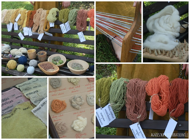 Mě osobně nejvíc zaujala výroba a barvení tkanin a vlny přírodními materiály. Vím, že i dnes se objevuje stále více šikulek, které si vlnu a len či bavlnu barví sami slupkami z cibule, kurkumou, červenou řepou, ale také indigem ad. Výrobky s takto barvených materiálů mají velmi hezké jemné odstíny, nejkrásnější jsou, když se spolu kombinují. Docela mě tahle oblast tvořivé „alchymie“ oslovuje, tak kdo ví, třeba taky někdy… 🙂