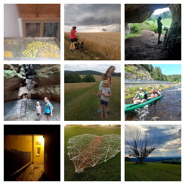 Holky strávili týden s babičkou a dědou na Klokočůvkách, kam se vždycky neskutečně těší kvůli bazénu hned pod chatou, každá strávila pár dnů ve Studénce v tlupě se stejně starými sestřenicemi a dva týdny byly na Vysočině u druhé babičky, dědy a prababičky. Plus basketbalové soustředění a příměstské tábory v naší úžasné tišnovské galerii.