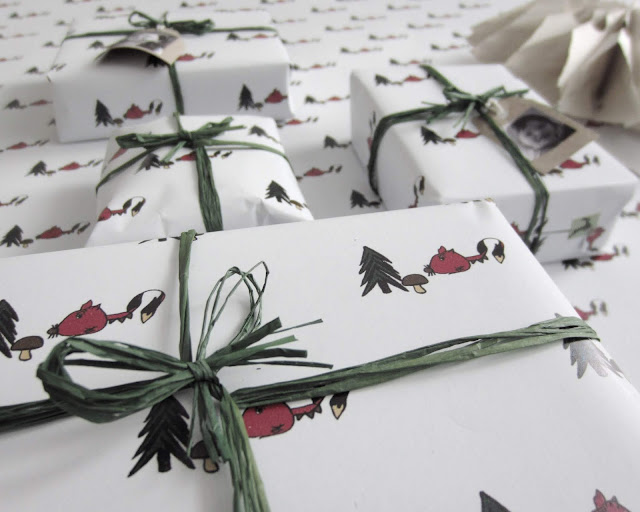 ...teta si doma s obrázkem trošku pohrála, přikreslila k lišce stromek a houbu, převedla do počítače, po nějakém čase přizvala mě ke spolupráci (abych si rozhodla barevnost ;-D), no a potom mi z dceřina dílka zařídila takovýhle krásný balicí papír, který nám vytiskly u nás v copy centru. Takže letos jsem na balení vánočních dárků měla takovouto libůstku, málo zero waste a hodně neekonomický, ale zato nejkrásnější na světě ❤...