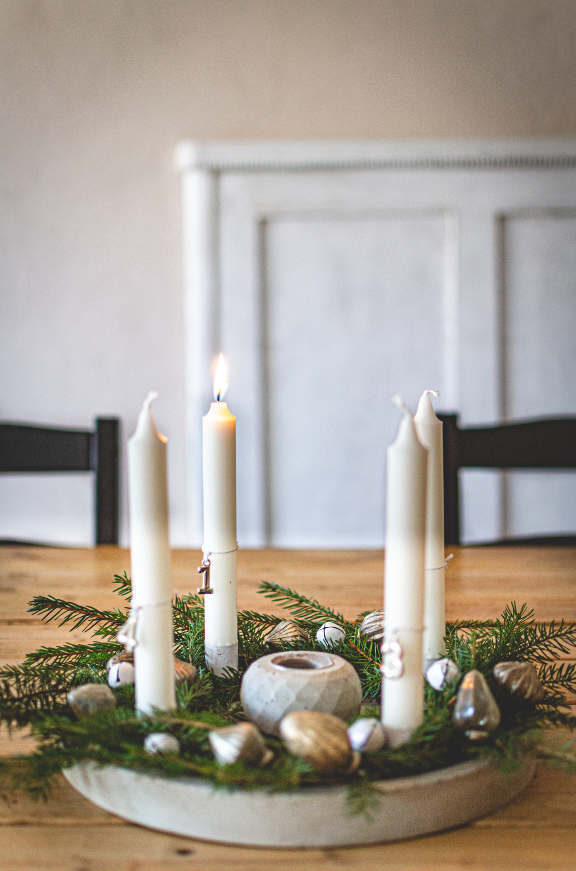 Druhá adventní neděle je ta tam a já už mám všechny dárky a všechny je mám dokonce zabalené. Krabice lineckého je taky napečená, ale co nemám to je výzdoba. Postupně ji totiž přidělávám a předělávám. Hlavní výzdobou jsou světýlka a jehličí. To je pro mě to neopakovatelné kouzlo vánoční výzdoby. Co taky jiného do víc jak 100 let starého domu. Věnec nemáme žádný, ale dva adventní svícny. Jeden na stůl do jídelny a druhý, který přenáším mezi obývákem a pracovnou. Je to ovlivněné tím, kde si Ema zrovna roztahá svoje důležité propriety, jako omalovánky, plyšáky, panenky a Lego.