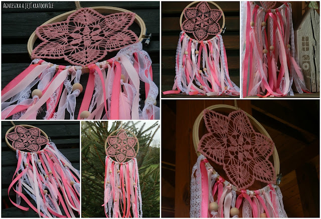 … na přání růžový lapač snů. Pro mou sousedku, která mi občas přebírá od pošty balíčky s tvořivým materiálem, když nejsem doma 🙂