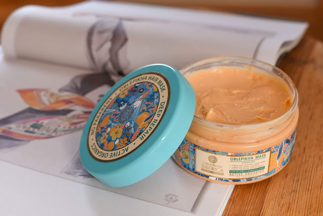 Na ty svoje suché délky teď používám vyživující rakytníkovou masku Natura Siberica. Voní fakt po rakytníku, ale ne každému se tahle vůně musí líbit. Každopádně obsahuje olej z rakytníku a arganový a cedrový olej. Pomáhá posilovat vlas, hydratovat a keratin v ní obsažený vyplňuje vlasovou strukturu, uhlazuje ho a dodává lesk bez zatížení. Keratin se z vlasového vlákna mezi mytím postupně vytrácí, takže ho nezatěžuje a nezpůsobuje plihnutí ani lámání.Vlasy jsou naopak na dotek pružnější, aspoň takový dojem jsem měla po použití já.