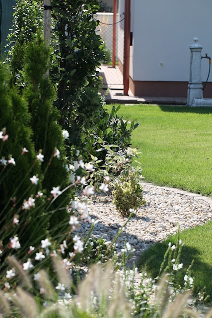 S úpravami našej záhrady sme začali na jeseň minulý rok. Po rôznych menších i väčších problémoch si užívame prvé leto s pekne upravenou záhradou. Moja predstava bola mať bielo kvitnúcu záhradu so všetkými odtieňmi zelenej. Podľa toho sa vyberali aj rastliny. Rastliny sú ešte malé a potrebujú sa rozrásť, ale už teraz viem, že budem robiť nejaké zmeny. Nie všetky rastliny poznám podľa mena, takže sa stále učím. A hlavne sa učím starostlivosti o ne.