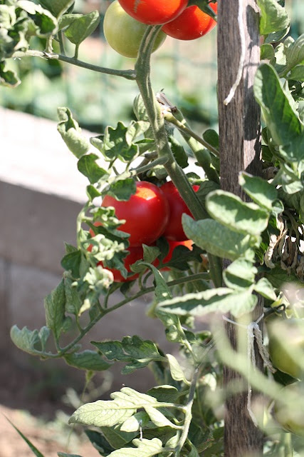 Samozrejme je aj pár stĺpových ovocných stromkov, maliny, rajčiny a paprika, jahody.