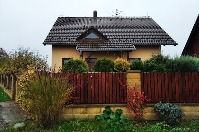 Fotka domu vznikla chvilku před tím, než nám před nakvetlou trávou