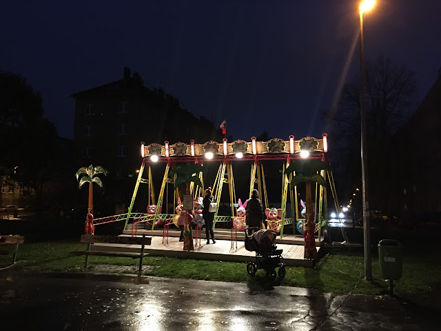 Zatím vánoční náladu příliš nepociťuji. Sotva jsem uklidila poslední truhlíky před inzerovanými mrazíky, valí se na mne ze všech stran při mých toulkách Prahou „adventní šílenství“. Přemýšlím, kdy také podlehnu. Bohužel, zatím nemám ve skříni ani jeden dárek a úpěnlivě čekám na inspiraci. Občas čtu, jak která hvězda má dárky již pěkně zabalené, ale mně nějak schází koncepce… Čím se však mohu pochlubit, je obrovská zásoba svíček. Pro mne za mně, může nastat velký výpadek proudu, já mám čím svítit. Tak si svíčky pálím každý večer doma a přes den občas i v práci. A také, jsem si „ve slevě“ koupila dva kabáty…Tři další mi visí ve skříni. Jsem zvědavá, kdy je unosím! Možná, že se podvědomě připravuji na dlouhou a tuhou zimu. Kladu si otázku, jak tu dlouhou zimu přežiju, když ji vlastně nemám vůbec ráda. Já miluji léto. Ach jo. Je mi jasné, že bych s tímto přístupem, ale nikam konstruktivně nedošla a jenom bych se trápila, takže musím jít Adventu a zimě naproti. První zastavení je jak jinak než obrazové… kolotoče, červánky a vánoční ozdoby, svíčka a první pečení perníčků… a tak vnímám a přijímám…