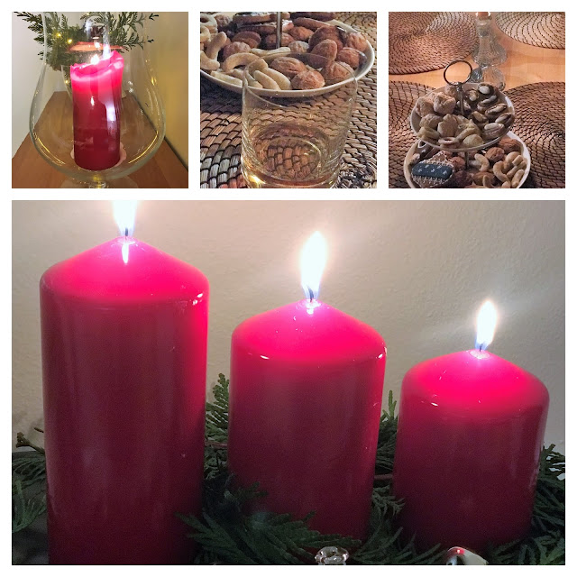 Do dnešního odpoledne jsem se nestačila vánočně naladit... jako by mi letošní prosinec chtěl ukázat zač je toho loket... Částečně si za to mohu sama, protože jsem si vymyslela několik projektů, které jsem musela dotáhnout dokonce a po pravdě mne docela vyčerpaly, ale prosinec mi také připravil nepříjemné chvíle v práci, které se týkaly problémy v lidských vztazích a komunikace... Takže to dopadlo tak, že cukroví mi letos napekla moje maminka a adventní věnec je tentokrát ne věncem a tvoří jej tři svíce a nastříhané větvičky tújí...
