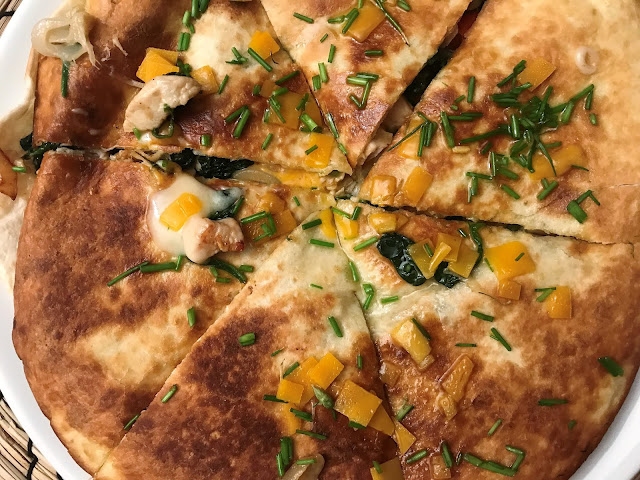 Nejprve si vytvoříme náplň, a to tak že na lžíci olivového oleje osmažíte tence nakrájené proužky masa a stejně tak nakrájenou cibuli. Osolíte, okořeníte, těsně před dokončením přidáte česnek, baby špenát, kukuřici, pár kapek citronu a třeba jeden tavený sýr a odstavíte z ohně... Na druhou pánev dáte lžíci olivového oleje, na tu dáte jednu placku - torillu a tu hojně, hlavně v krajích posypete sýrem, na ní dáte masovou směs a přikryjete druhou tortillou, kterou rukou pěkně přitlačíte. Několik minut na mírném ohni zapékáte, a poté za pomocí obracečky celé obrátíte vzhůru. Opět minutu až dvě opékáte z druhé strany. Na závěr můžete tortillu posypat bylinkami či zbytkem sýra. Dále placku rozkrájíte na několik dílů. A teď se obrňte... čeká Vás skvostný kulinářský zážitek a ovace Vašich bližních!