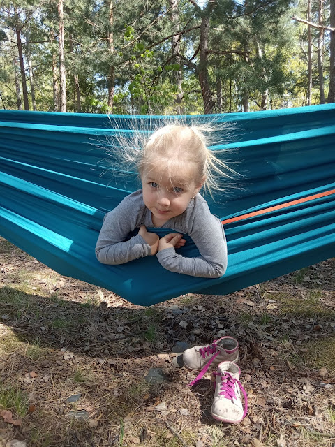 Krátká nenáročná trasa prokládaná dlouhými válecími pauzami. S Hamakou zavěšenou mezi stromy, lezením holek po starých borovicích, mácháním se v potoce, házením žabek a hledáním multikešky. Díky multikešce jsme prošli nejzajímavějšími místy, kam bychom se po obyčejné lesní cestě nikdy nepodívali.