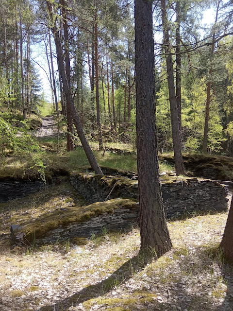 Hromady břidlice, nejspíše hlušiny ze starých lomů, porostlé mechem, břízami a borovicemi. Světlé řídké lesy vonící borovým jehličím. Zatopené lomy a břidlicové základy starých dělnických domků.