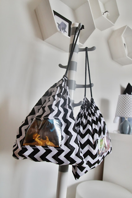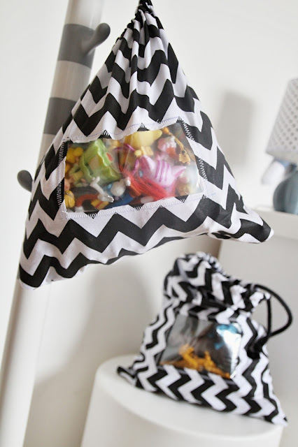 Okýnky děti krásně vidí, co který pytlíček obsahuje.
