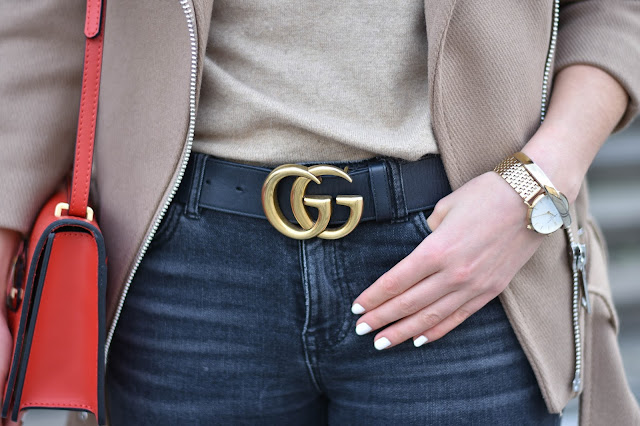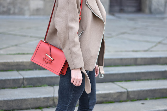 Vemte si takový obyčejný outfit jako je béžový kabátek, černé džíny a přidejte k tomu výrazný červený detail. Hned z toho máte něco mnohem zajímavějšího. Vždycky jsem z červené měla respekt. Obdivovala jsem sice rudé kabáty až na zem, velkou večerní v královsky červené, ale nikdy jsem na tyhle kousky neměla odvahu. A to i přesto, že tahle super barva sluší blondýnám i brunetkám. T|roufla jsem si tedy alespoň na rtěnku, protože svůj perfektní červený odstín máme každá. A taky na tuhle boží kabelku z Camelia Roma. Mají super stylové kousky většinou z kůže. Už dlouho jsem chtěla mít v šatníku něco výraznějšího a tahle kabelka perfektně splnila účel. Díky ní dokážu rozsvítit jinak nudný outfit v mých oblíbených barvách šedé, béžové a černé. Co myslíte, byla by snad k tomuhle outfitu lepší barva?