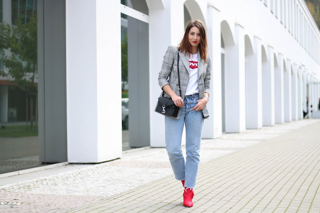 Zara blazer, Levis tee, vintage jeans, Rebeca Minkoff bag, Miss Selfridge boots