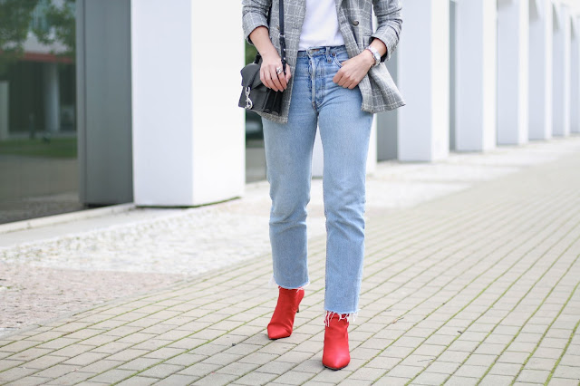 Jak takové kozačky nosit? Zkoušela jsem je k šatům v nude nebo béžové barvě a taky vypadaly super. K džínům s rovnými nohavicemi se mi ale líbí nejvíc. Stačí je nechat barevně vyniknout v jednoduché kombinaci, nebo přidat další červený detail…potisk na tričku nebo rudá rtěnka. Červená si dobře rozumí s černou, bílou, béžovou, krémovou, šedou, ale klidně zkuste i něco neokoukaného, jako mix růžové a červené. Nebo vzory, černobílí kostka nebo puntík s ní dobře funguje. A světlá džínovina k rudé prostě patří, stejně jako leopardí vzor. Nedivte se, že na sobě nemám kabát a šálu, fotky jsou staršího data, ale vy si to tam domyslíte, že jo..? 😀 Chtěli byste příště nějakou outfitovou inspiraci, jak tenhle typ kozaček nosit?