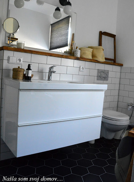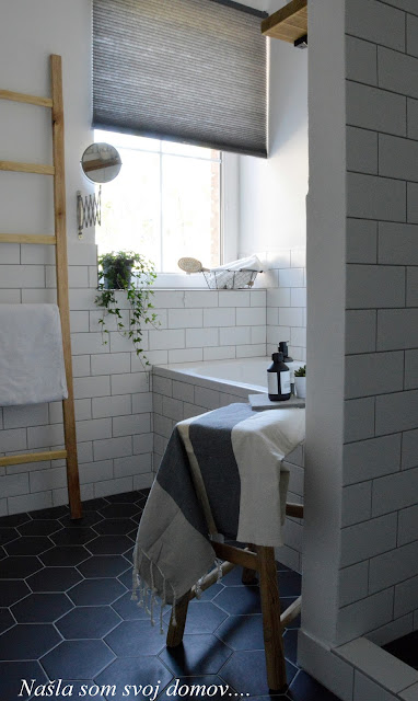 ...uchvátila ho dlažba v tvare hexagonu až tak, že ju neváhal zháňať po okolitých štátoch, nakoniec sa mu podarilo zohnať ju v Maďarsku...mala som trochu obavy z čiernej podlahy hlavne v sprcháči ale zdá sa, že to nebude také zlé a postačí jej bežná údržba raz za týždeň...