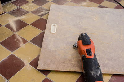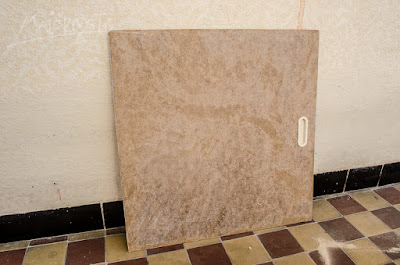 Jako Mikymauzové s šedesátkovým espritem pěkní, ale prostě ne-e. Původní záměr byl tedy pouze sundat je dolů, k čemuž mi manžel opatřil benzín, ale neklaplo to. Papír i lepidlo už totiž za těch čtyřicet, padesát let stihly degradovat natolik, že to šlo škrábat jedině nožem, a i to blbě. Navíc se ukázalo, že pod nálepkou je samozřejmě povrch o něco tmavší. Takže znova a lépe. Musela jsem zavolat na pomoc svoji dobrou kamarádku opalovačku a to teprv byla jízda. Ukázalo se, že nátěr jde sloupnout úplně parádně a pod ním se navíc objevil jakýsi sololit, takže se mi vzápětí vyrýsovala šance dát dvířkům úplně novou barvu.