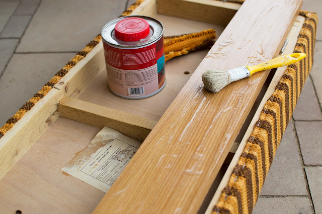 Na každej veci / nábytku ktorý prerábam sa naučím niečo nové. Pri pohovke som sa naučila používať teplovzdušnú pištoľ. Dvojzložkový lak s ňou ide dole ľavou zadnou. Treba dávať ale pozor, aby sme dyhu nespálili. s Nožičkami tiež nemala problém.