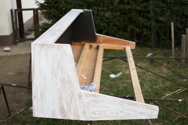Vnútornú časť som natierala čiernou farbou HET. Zvyšok som morila bielou lazúrou - Luxol.