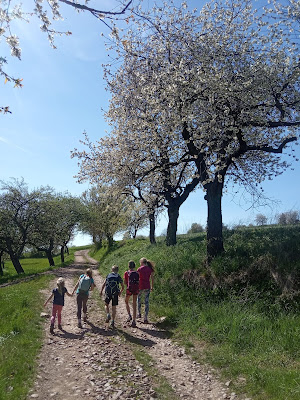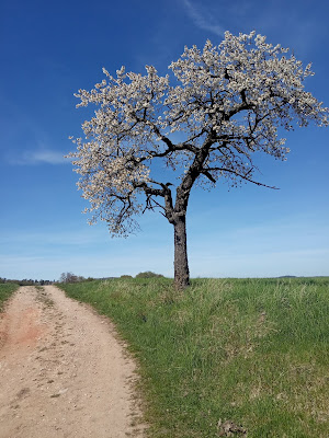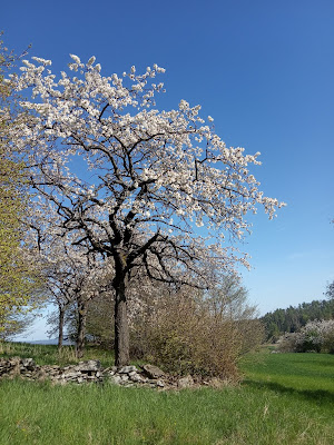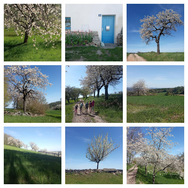 V neděli okruh Lomnice - Veselský chlum - Brusná - Lomnice. Čtyři dospělí, šest dětí. Chlum je dost profláklý, ale svými výhledy a kamennými zídkami nikdy nezklame. K tomu teď milion neskutečně krásných kvetoucích třešní - všechny jsem je musela vyfotit.