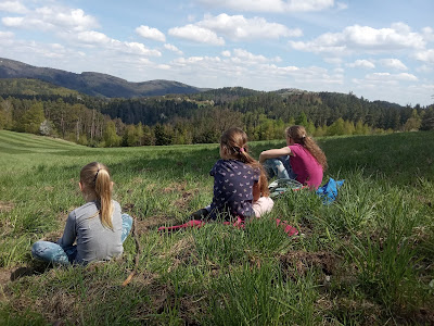 Určovat druhy rezekvítku s pomocí aplikace PlantNet, vychválit vesnické domky a divit se katalogovým bungalovům, probrat spolu všechna příkoří lockdownu. Prokládat to všechno Ondrovým neskutečně kreativním úkolováním dětí. Napodobovali olympijské disciplíny a mohli se přetrhnout jak je to bavilo. Plus hra na bombu (odpočítávám deset až nula a pak vás nesmím vidět) a potopu (odpočítávání, nesmíte stát na zemi) vylepšená o verzi "zavěste se někam". Paráda.