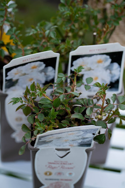 3 rovnaké ruže som sa rozhodla posadiť popri budúcej terase. Majú iba 50 cm, biele jednoduché kvety a volajú sa Innocencia. Patria ku opakovane kvitnúcim.