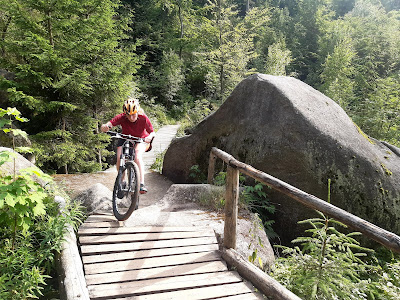 Někdy na kolech jen ve dvou, někdy ve třech s Terezkou. Sára kolo až na malé výjimky zatím ignoruje, Klárka raději jezdí s babičkou a dědou. Karel si stezek užíval každý den, většinou ráno než my si stihli dát snídani. Já si poslední den úplně neplánovaně posunula své hranice na Superflow. A líbilo, jen toho svého stresu bych si příště přála trochu méně.